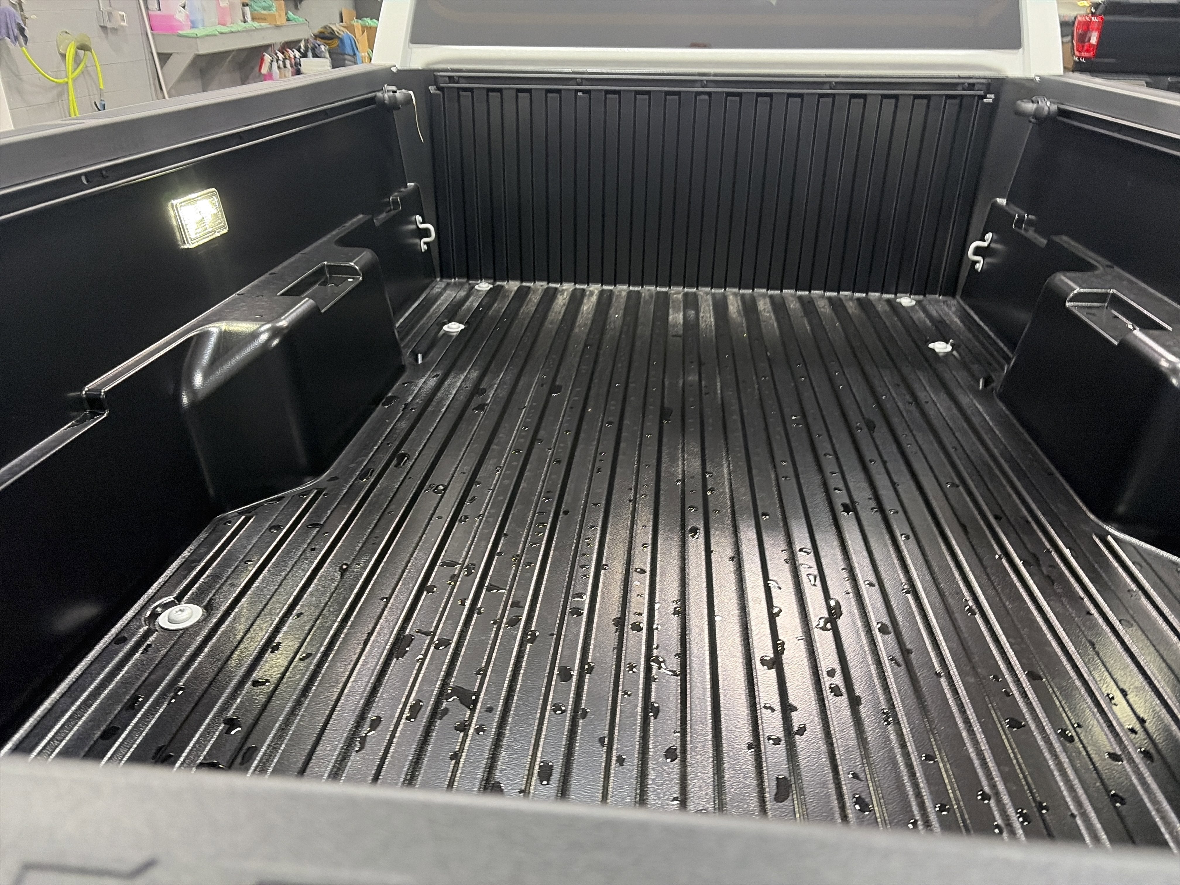 - Deck rail system with four adjustable tie-down cleats and fixed cargo bed tie-down points